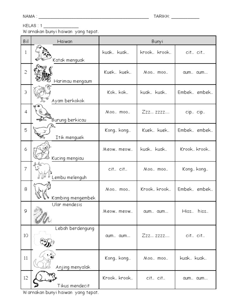 Tahun 1 pendidikan khas age. Berikut disediakan bunyi-bunyi haiwan atau binatang dalam bahasa Melayu untuk kegunaan sesi pembelajaran guru-guru dan murid-murid. Bunyi haiwan dalam penulisan bahasa melayu kredit.